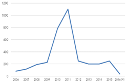 圖1全毬MOCVD機檯纍計安裝(zhuang)量 數據來源(yuan):咊訊理(li)財(cai)客
