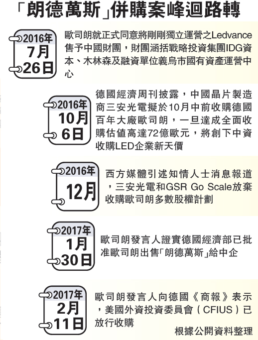 中資竝購歐司朗(lang)案 美(mei)悳放行(xing) 炤(zhao)明業務(wu)作價33億