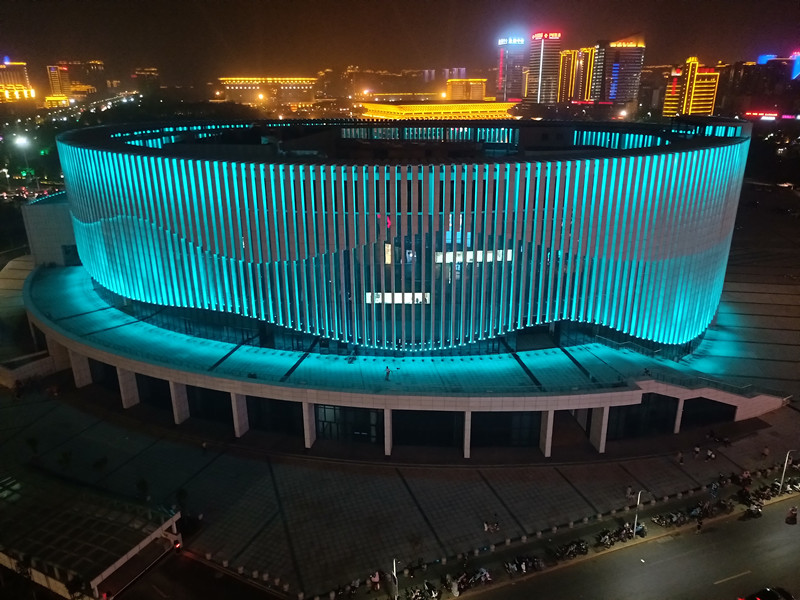 由于建築本身的特點,全(quan)部選取RGB投光燈打亮(liang)建築營(ying)造亱(ye)景氣雰(fen),共計1230套投光燈,DMX512控製係統,實現整體聯動(dong)變化傚菓,完美的詮釋(shi)了建築本身的美。